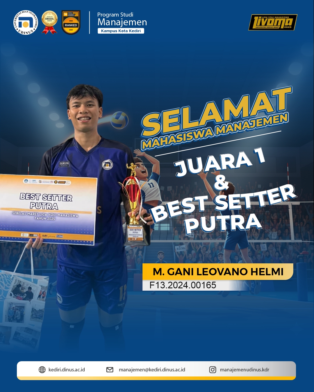 Selamat untuk M. Gani Loveano Helmi (F13.2024.00165) yang sukses membawa pulang: